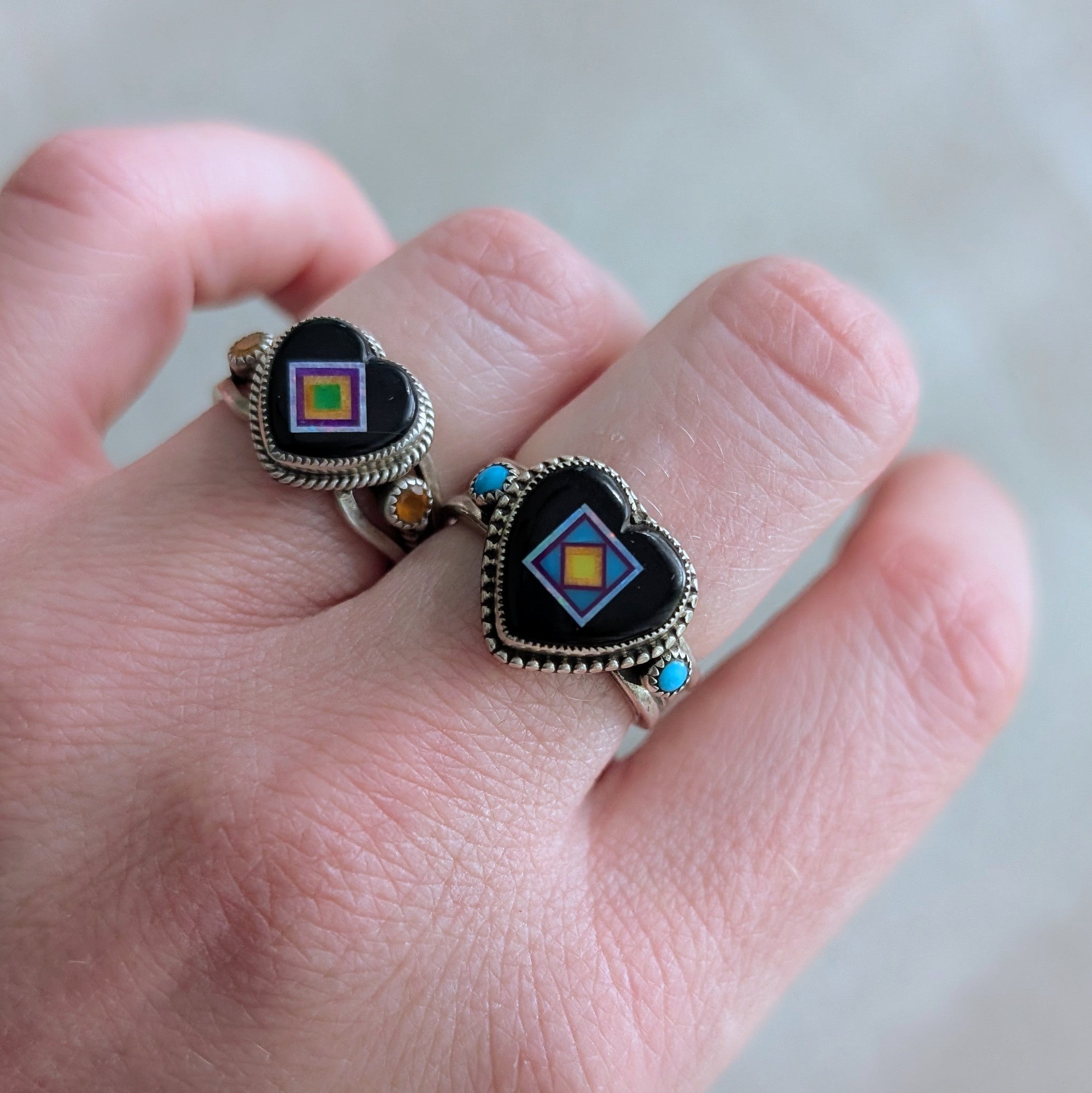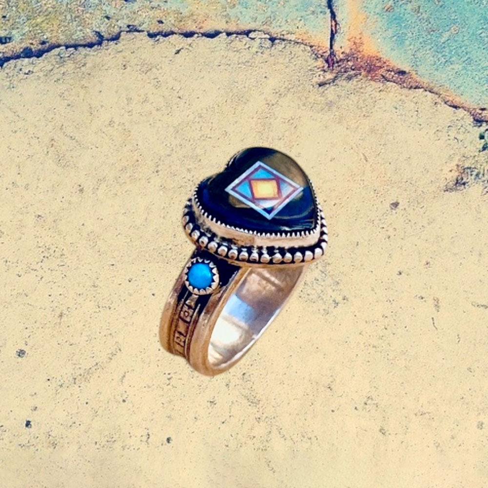 Sterling Silver Jet Heart Inlay with Turquoise Ring