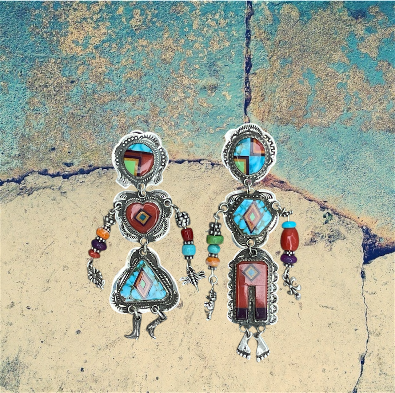 Sterling Silver Inlay People Earrings