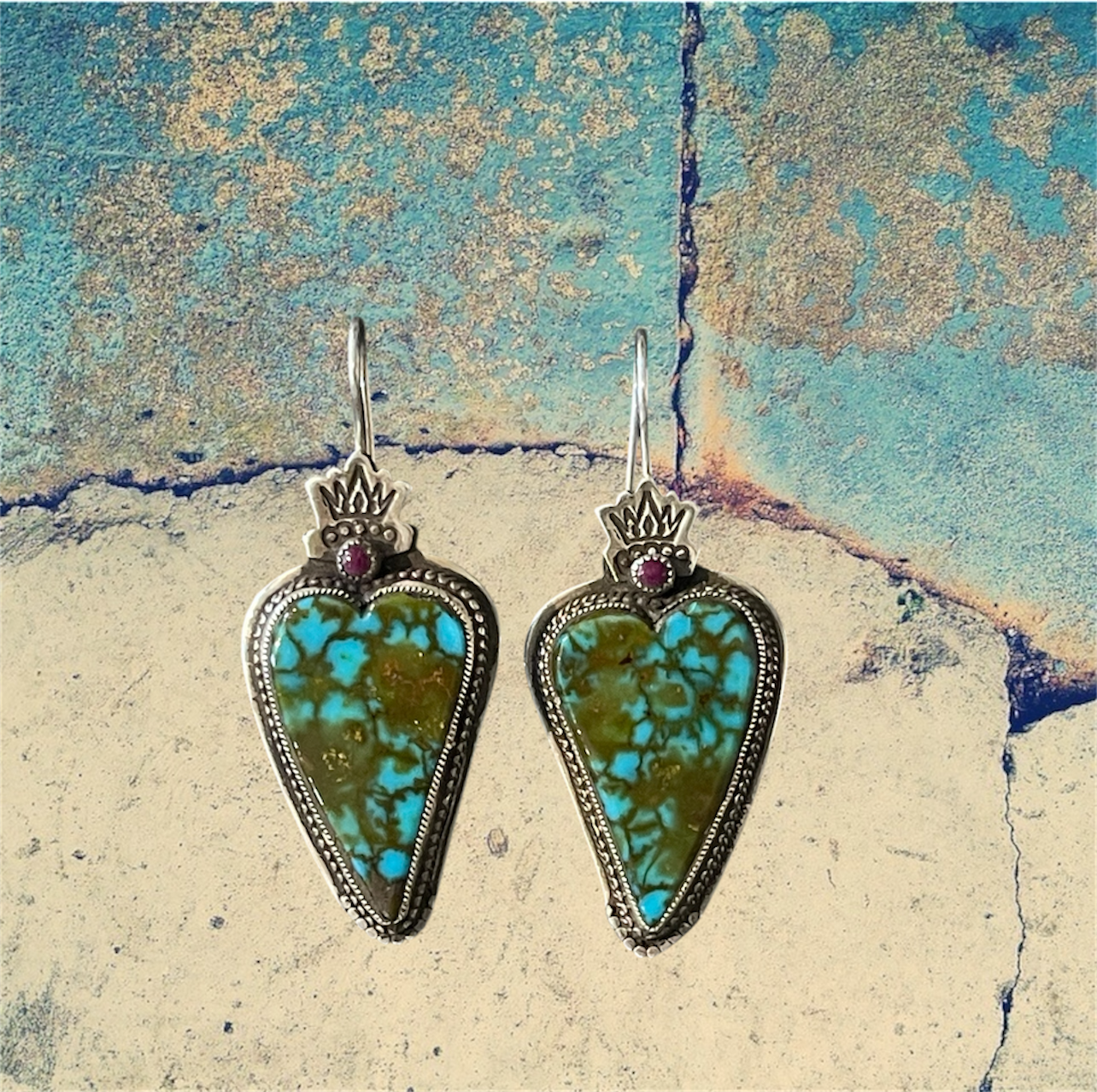 Sterling Silver Crowned Mohave Turquoise Regal Heart Earrings