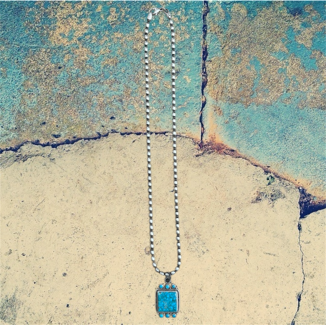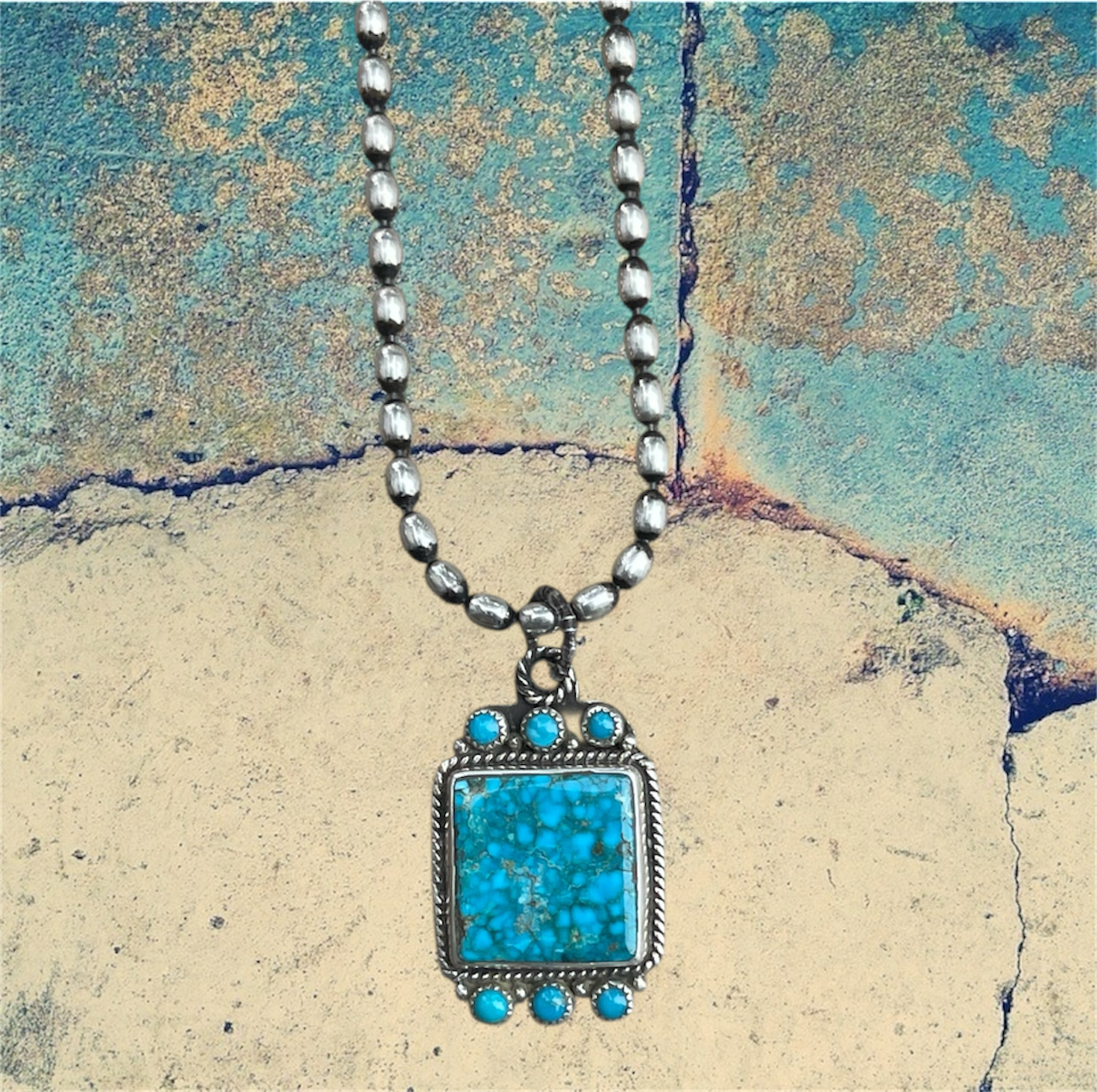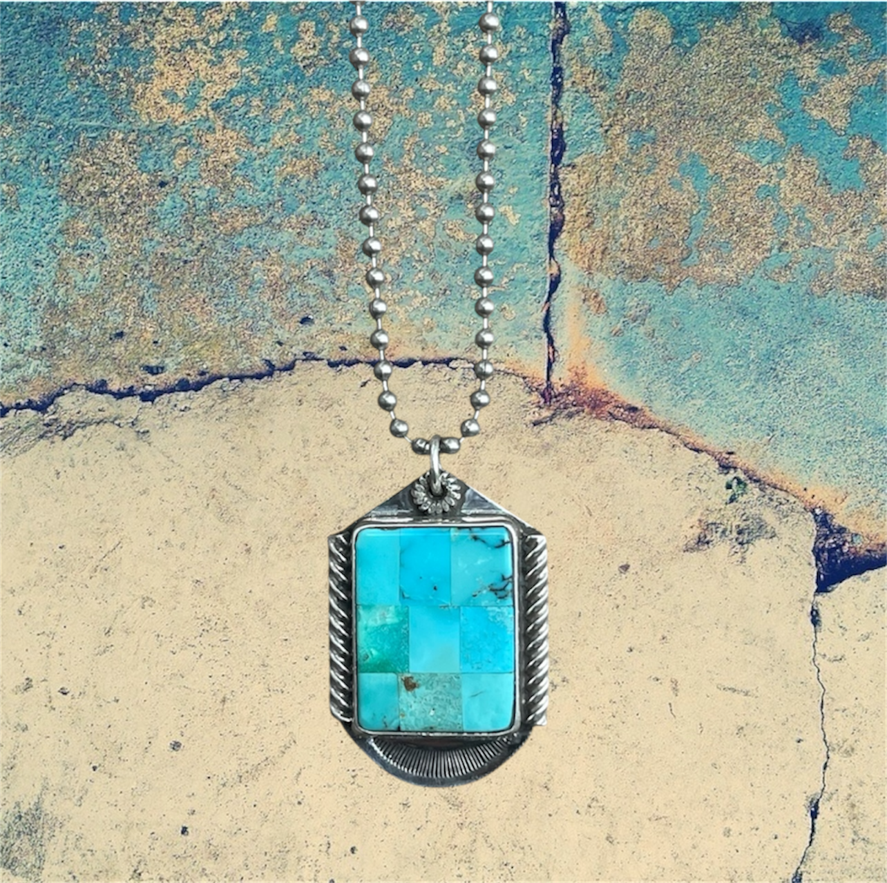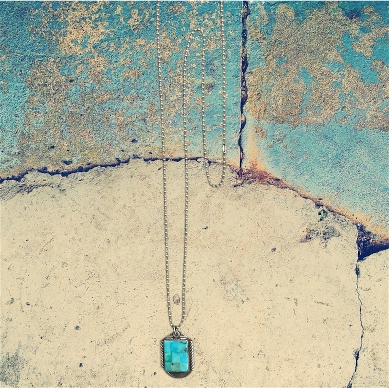 Sterling Silver Kingman Turquoise Dog Tag Necklace with Turquoise Accents