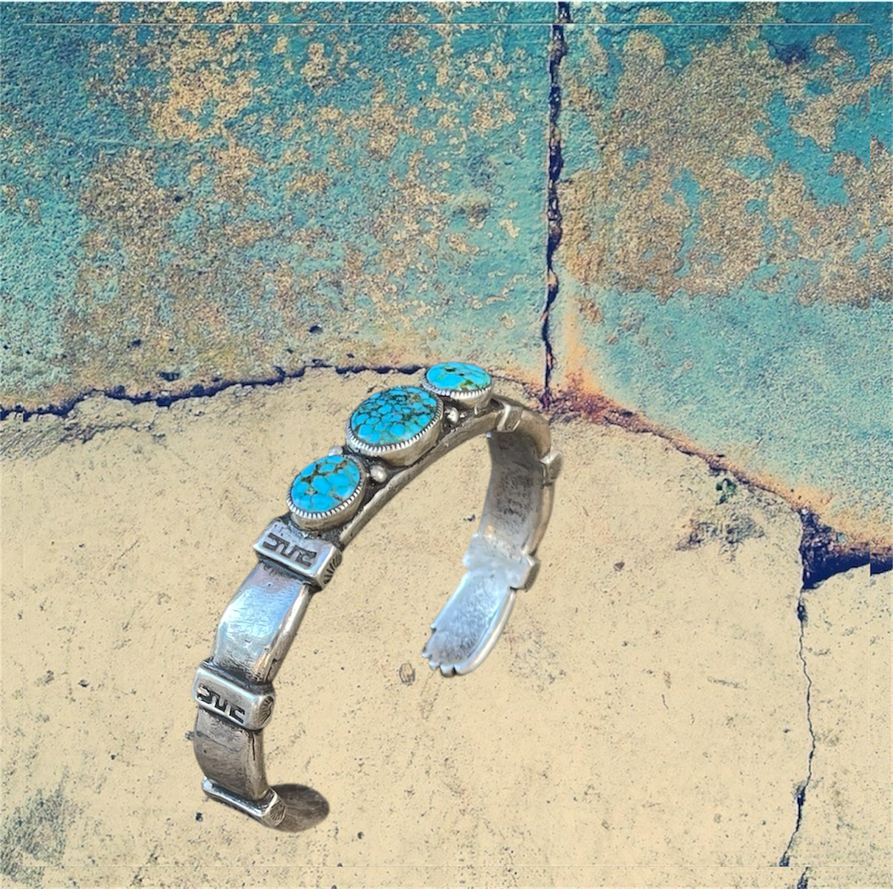 Sterling Silver Cuff Bracelet With Kingman Turquoise Stones