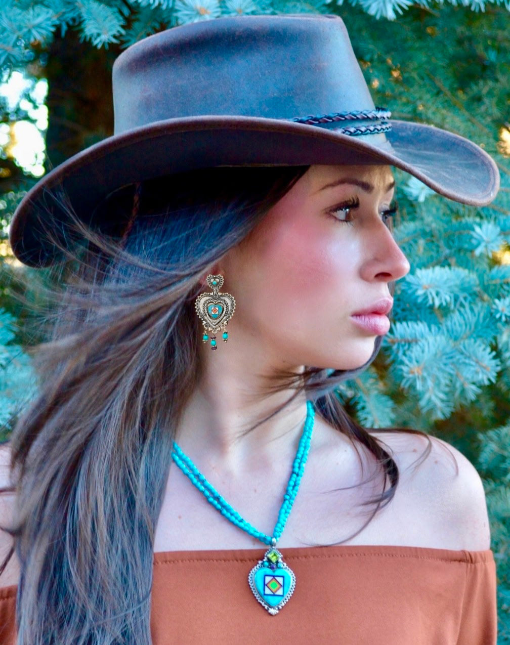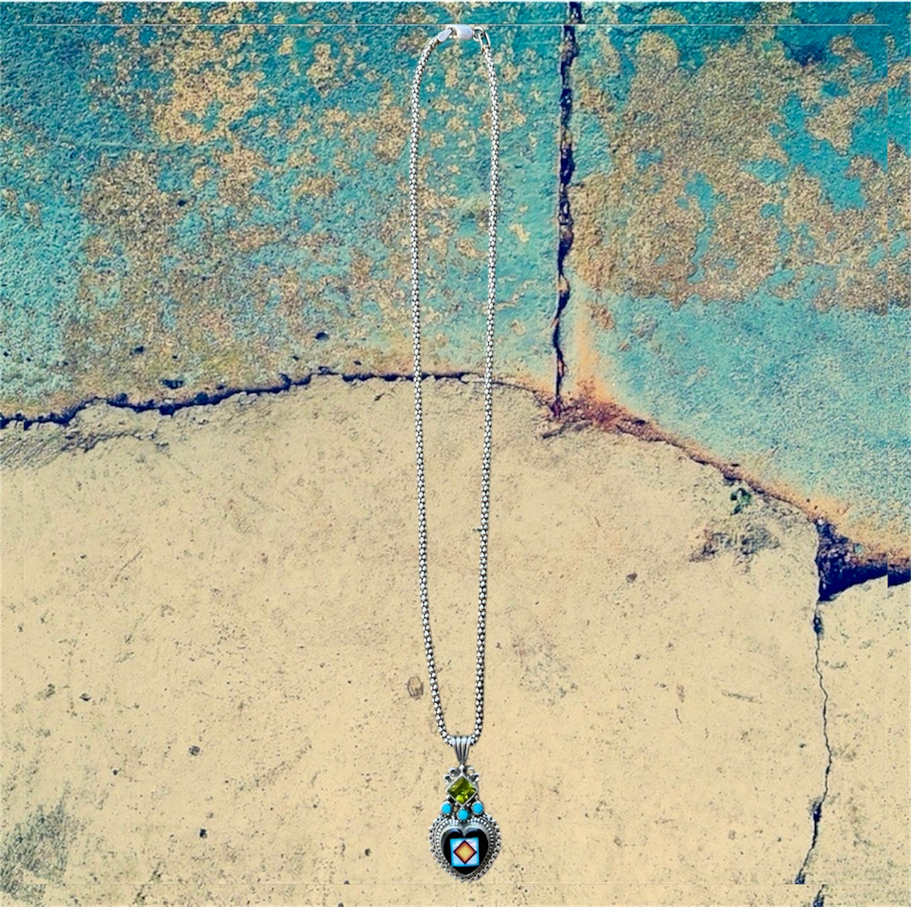 Sterling Silver Intricate Turquoise Heart Inlay with Beaded Dangles Earrings
