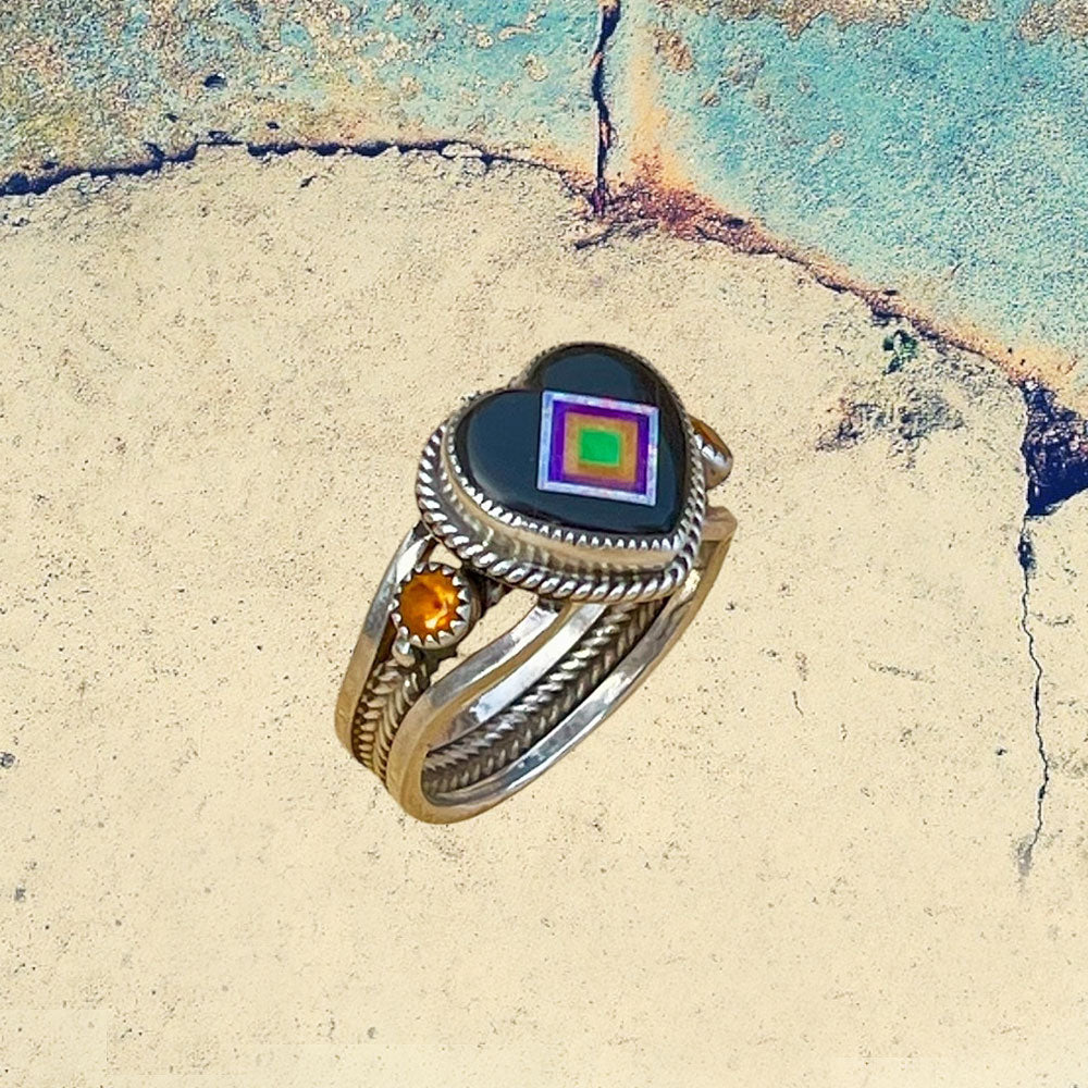 Sterling Silver Jet Heart Inlay with Carnelian Ring