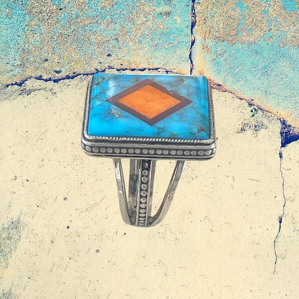 Sterling Silver Large Square Turquoise Inlay Ring