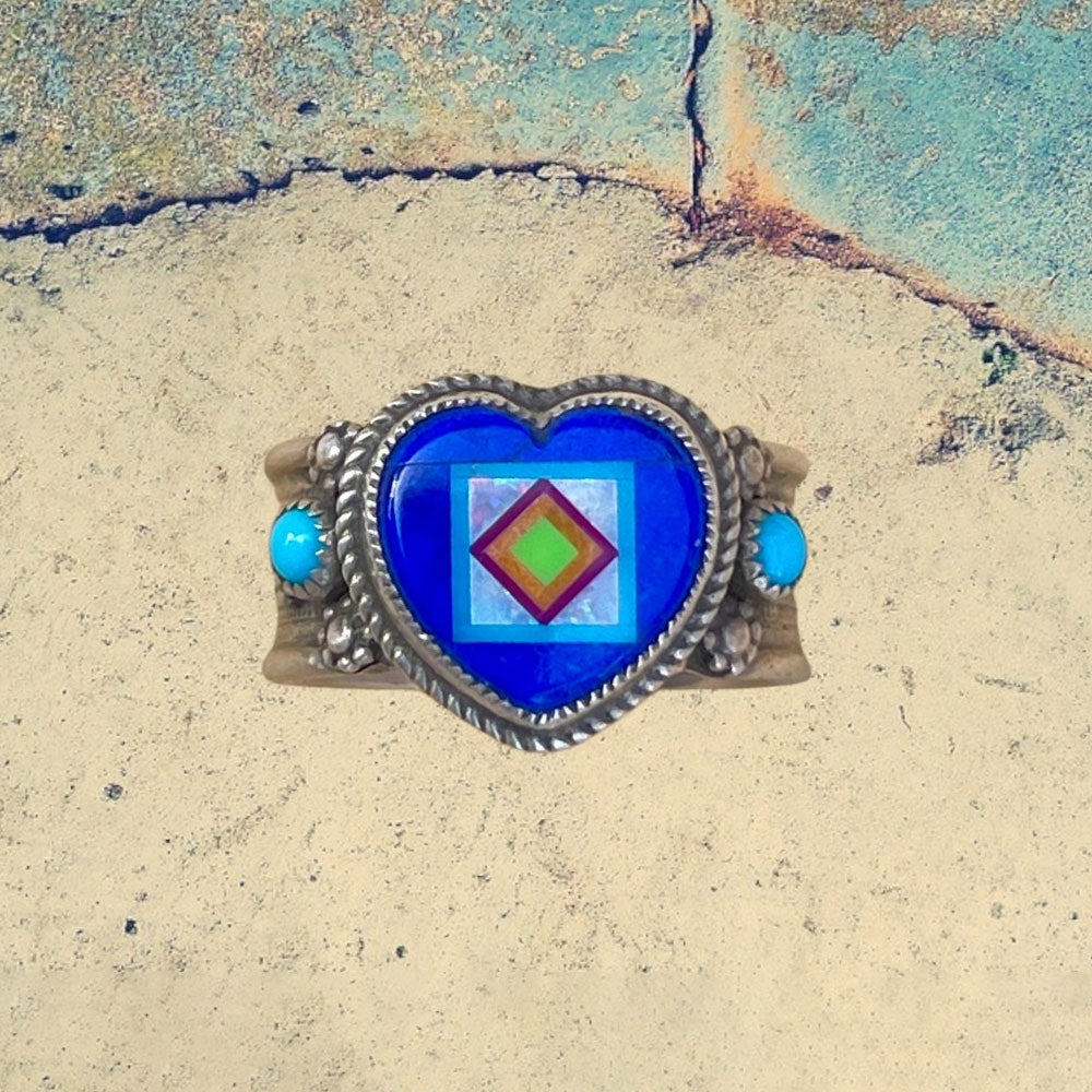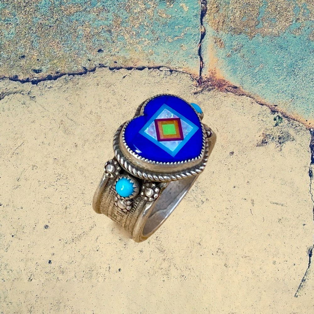 Sterling Silver Lapis Lazuli Heart Inlay with Turquoise Ring