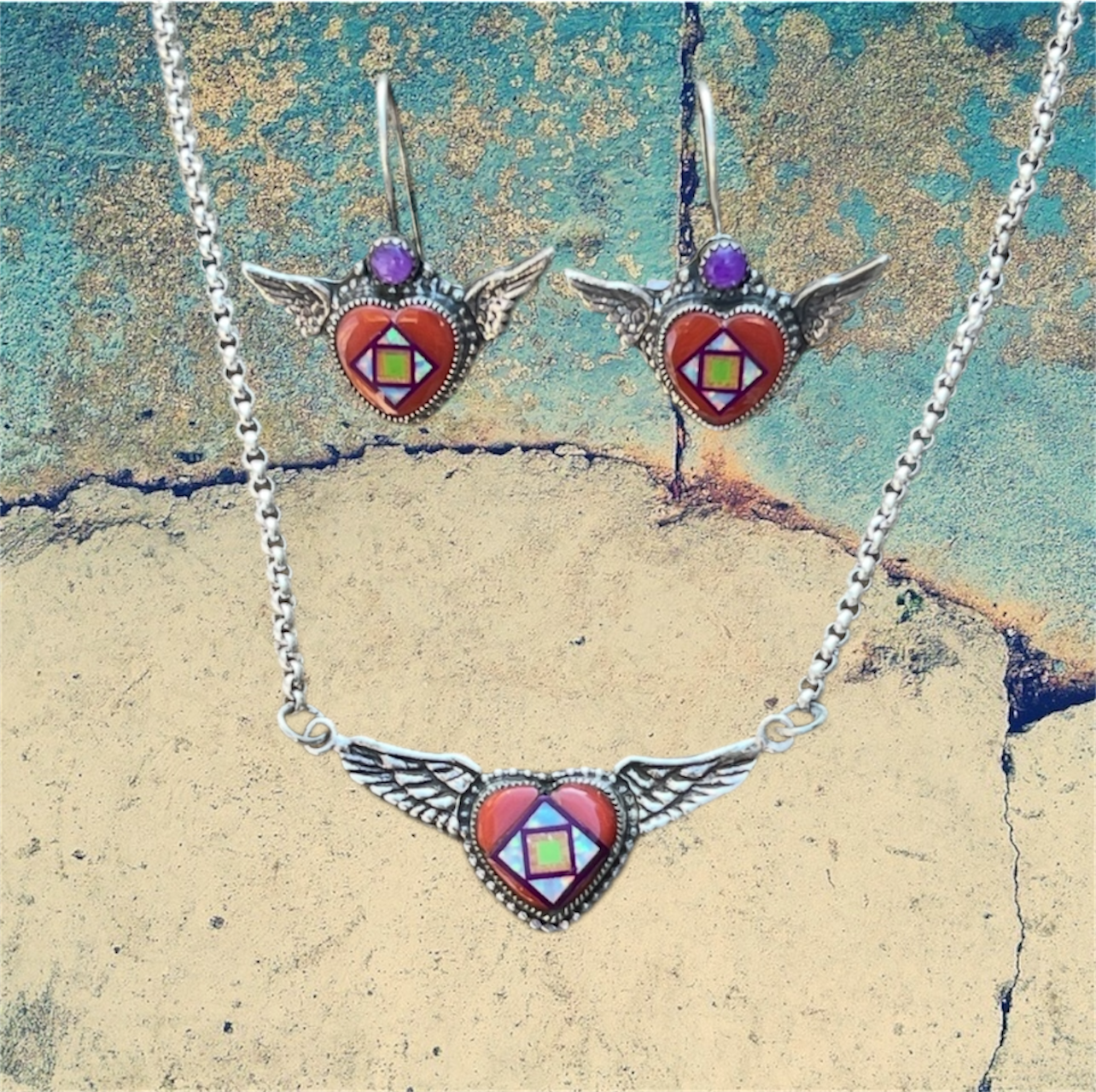 Sterling Silver Turquoise Heart Inlay with Sugilite Earrings