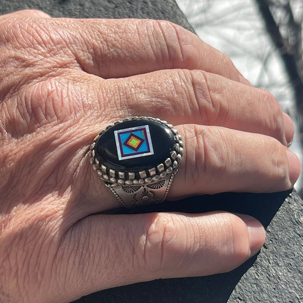 Sterling Silver Men's Large Jet Black Oval Inlay Ring