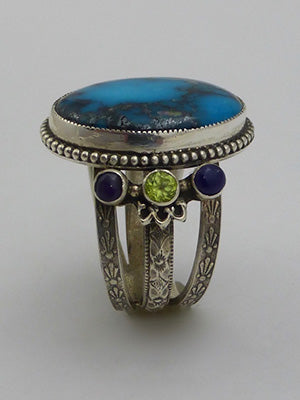 Inlay is considered a design element in the manufacture of jewelry. In our case for the majority of our jewelry the main stone is “inlaid.” For many other jewelers, stones are custom cut or carved to fit cavities or recessed areas within a piece of jewelry. While Aldrich Art jewelry is the opposite. We build the piece of jewelry around the inlaid stones.
